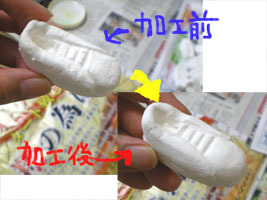 この前作っていた、84個の粘土の靴の形を整えていたんですが、
