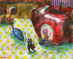 これは、りんごの家にすむ、ネコの夫婦の一コマです。